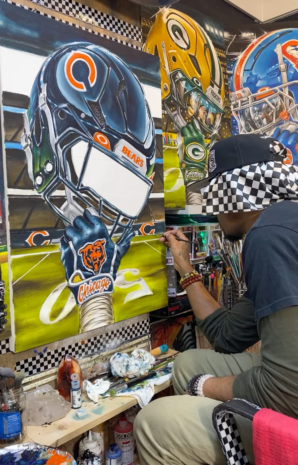 DA BEARS Chicago Painting by Jeremy Worst 2025 Sports Football Canvas Print Artwork helmet Nfl Football